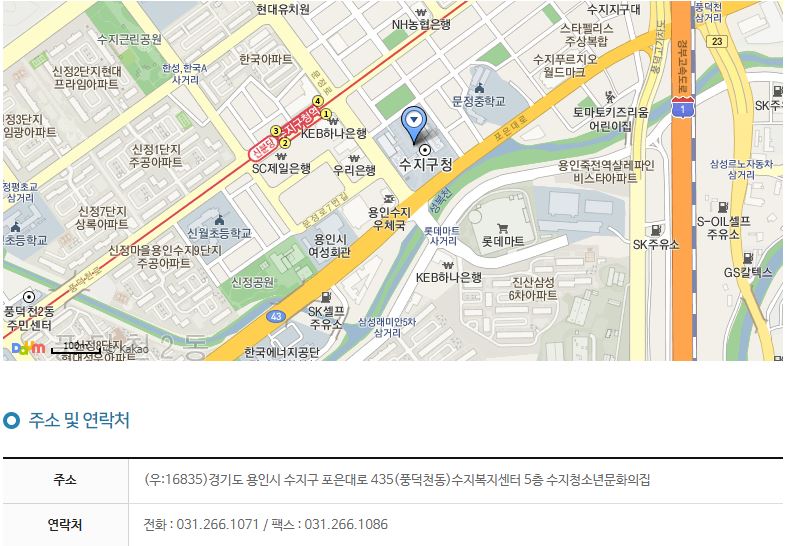 수지구 포은대로 435 수지복시센터 5층 수지청소년문화의집