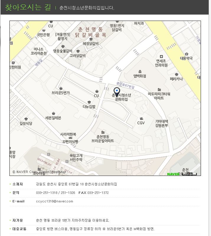 춘천 청소년 문화의 집 중앙로 67번길 18