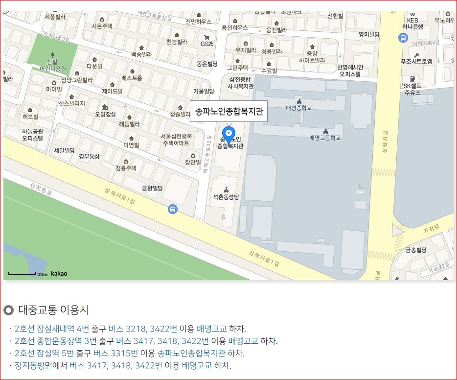 송파노인복지관- 삼전동 172-2 배명고 앞