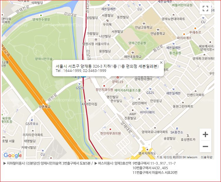 서울 본사 교육장 - 양재동 326-3 1층 편의점 세븐 일레븐 지하