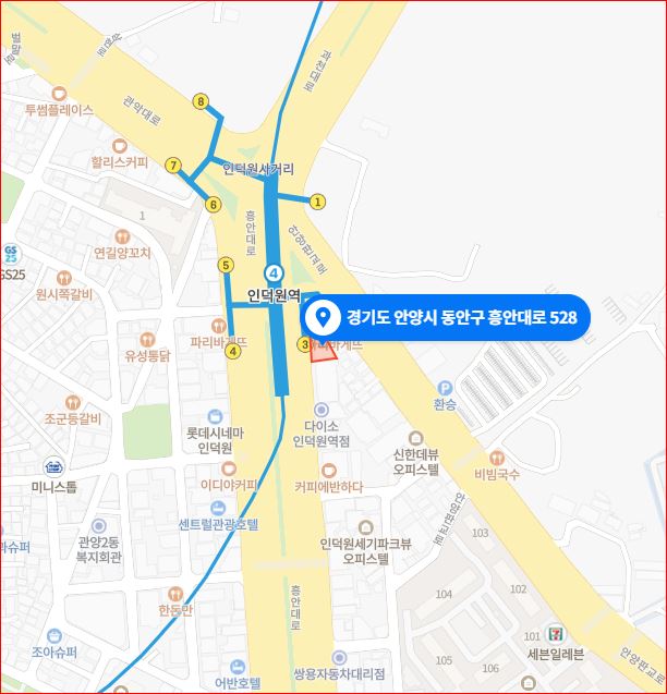 안양 - 정오 플레이스 흥안대로 528 7충 인덕원역 3번출구 앞