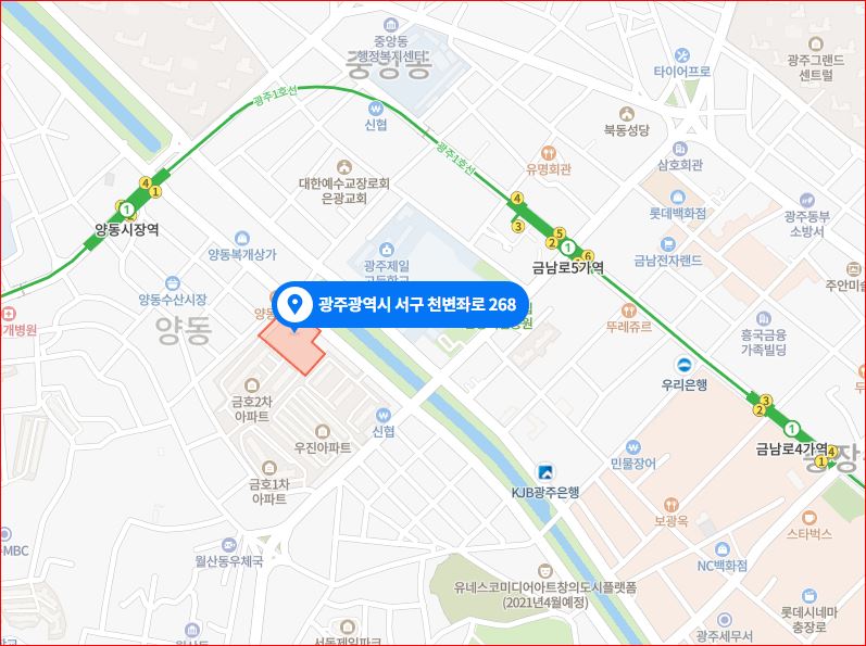 장소 소상공인 진흥공단- 서구 천변좌로 268, KDB생명빌딩 24층 - 양동시장 앞 광주제일고 건너편